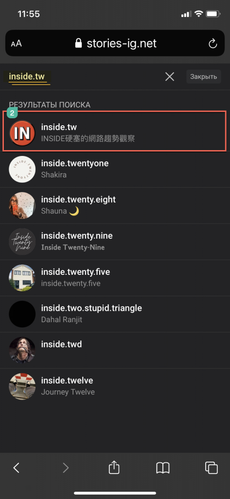 storiesdown.com和instalkr.com需輸入完整的ig帳號,其餘可以輸入部份id搜尋相關的ig帳號